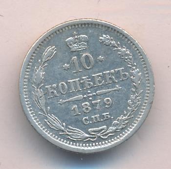 Лицевая сторона — гербовый орел, оборотная —обозначение номинала (10 копеекъ), окруженное венком из лавровой и дубовой ветвей и дата.