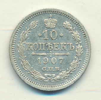 Лицевая сторона — гербовый орел, оборотная —обозначение номинала (10 копеекъ), окруженное венком из лавровой и дубовой ветвей и дата.