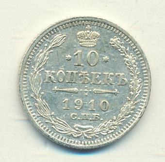 Лицевая сторона — гербовый орел, оборотная —обозначение номинала (10 копеекъ), окруженное венком из лавровой и дубовой ветвей и дата.