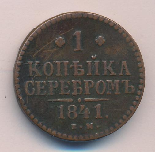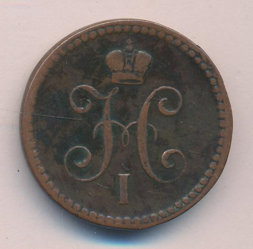 Лицевая сторона — вензель Николая I в бусовом ободке, оборотная — надпись «1 КОПЕЙКА СЕРЕБРОМ» и дата. Нормативный вес — 10,24 грамма, гурт гладкий.