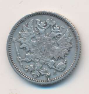 Лицевая сторона — российский двуглавый орел с гербом Великого княжества Финляндского на груди, оборотная — номинал и дата в венке из дубовых листьев. Проба — 750, нормативный вес — 1,27 грамма, гурт рубчатый.