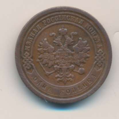 Лицевая сторона — двуглавый орел, надпись МЕДНАЯ РОССIЙСКАЯ МОНЕТА и обозначение номинала (одна копейка); оборотная — обозначение номинала (1 копейка) в бусовом ободке и дата. Нормативный вес — 3,28 грамма, гурт рубчатый.