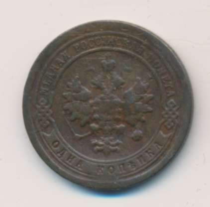 Лицевая сторона — двуглавый орел, надпись МЕДНАЯ РОССIЙСКАЯ МОНЕТА и обозначение номинала (одна копейка); оборотная — обозначение номинала (1 копейка) в бусовом ободке и дата. Нормативный вес — 3,28 грамма, гурт рубчатый.