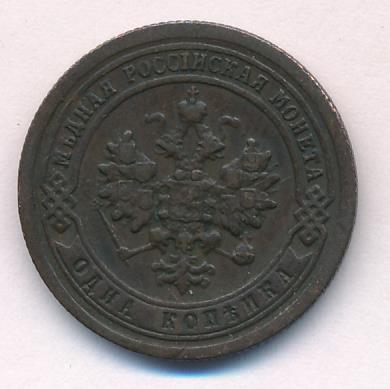 Лицевая сторона — двуглавый орел, надпись МЕДНАЯ РОССIЙСКАЯ МОНЕТА и обозначение номинала (одна копейка); оборотная — обозначение номинала (1 копейка) в бусовом ободке и дата. Нормативный вес — 3,28 грамма, гурт рубчатый.