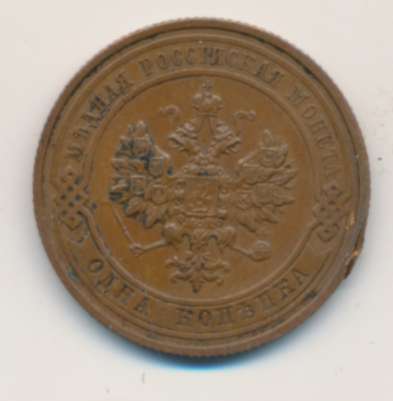 Лицевая сторона — двуглавый орел, надпись МЕДНАЯ РОССIЙСКАЯ МОНЕТА и обозначение номинала (одна копейка); оборотная — обозначение номинала (1 копейка) в бусовом ободке и дата. Нормативный вес — 3,28 грамма, гурт рубчатый.