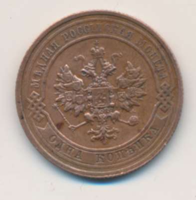 Лицевая сторона — двуглавый орел, надпись МЕДНАЯ РОССIЙСКАЯ МОНЕТА и обозначение номинала (одна копейка); оборотная — обозначение номинала (1 копейка) в бусовом ободке и дата. Нормативный вес — 3,28 грамма, гурт рубчатый.