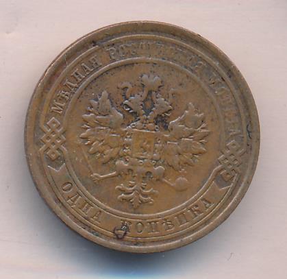 Лицевая сторона — двуглавый орел, надпись МЕДНАЯ РОССIЙСКАЯ МОНЕТА и обозначение номинала (одна копейка); оборотная — обозначение номинала (1 копейка) в бусовом ободке и дата. Нормативный вес — 3,28 грамма, гурт рубчатый.