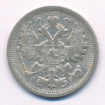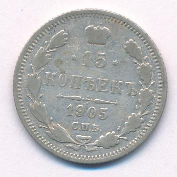 Лицевая сторона — гербовый орел, оборотная —обозначение номинала (15 копеекъ), окруженное венком из лавровой и дубовой ветвей и дата.