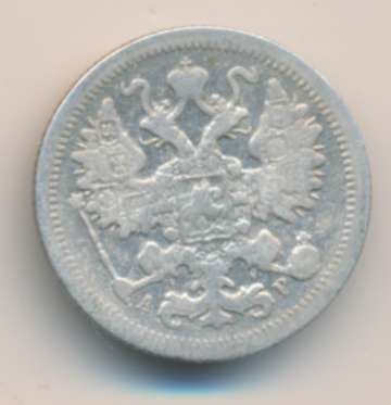 Лицевая сторона — гербовый орел, оборотная —обозначение номинала (15 копеекъ), окруженное венком из лавровой и дубовой ветвей и дата.