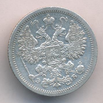 Лицевая сторона — гербовый орел, оборотная —обозначение номинала (15 копеекъ), окруженное венком из лавровой и дубовой ветвей и дата.