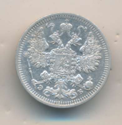 Лицевая сторона — гербовый орел, оборотная —обозначение номинала (15 копеекъ), окруженное венком из лавровой и дубовой ветвей и дата.