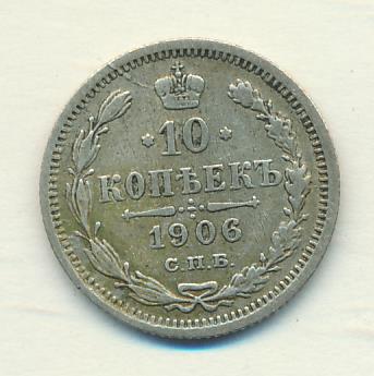 Лицевая сторона — гербовый орел, оборотная —обозначение номинала (10 копеекъ), окруженное венком из лавровой и дубовой ветвей и дата.
