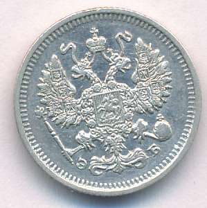 Лицевая сторона — гербовый орел, оборотная —обозначение номинала (10 копеекъ), окруженное венком из лавровой и дубовой ветвей и дата.