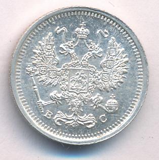Лицевая сторона — гербовый орел, оборотная —обозначение номинала (10 копеекъ), окруженное венком из лавровой и дубовой ветвей и дата.