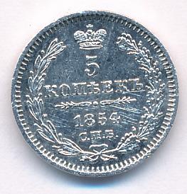 Лицевая сторона — новый гербовый орел с поднятыми крыльями, оборотная —обозначение номинала (5 копеекъ), окруженное венком из лавровой и дубовой ветвей и дата. Проба — 868, нормативный вес — 1,04 грамма.