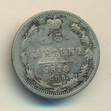 Лицевая сторона — гербовый орел, оборотная —обозначение номинала (15 копеекъ), окруженное венком из лавровой и дубовой ветвей и дата.