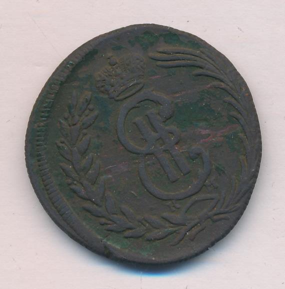 Лицевая сторона - два соболя поддерживают щит с обозначением номинала (две копейки) под короной, надпись «СИБИРСКАЯ МОНЕТА». Оборотная — вензель Екатерины II в венке из пальмовой и лавровой ветвей. Гурт — надпись «колыванская медь» или шнур. Вес — 13,10 грамма.