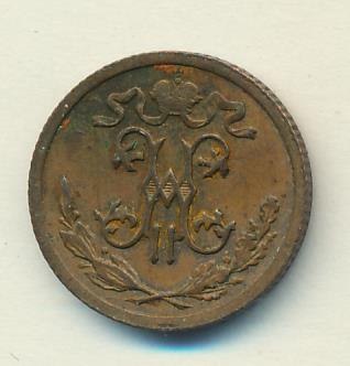 Лицевая сторона — вензель Александра II в венке из лавровой и дубовой ветвей; оборотная — обозначение номинала (1/2 копейки) и дата. Нормативный вес — 1,64 грамма, гурт рубчатый.