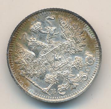 Лицевая сторона — гербовый орел, оборотная —обозначение номинала (15 копеекъ), окруженное венком из лавровой и дубовой ветвей и дата.