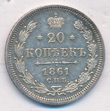 В 1861 году из-за перегруженности Петербургского двора заказы на чеканку части 20, 15 и 10 копеек размещаются на Парижском и Страсбургском монетных дворах. На этих монетах тот же знак двора СПБ, но отсутствует знак минцмейстера.