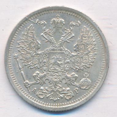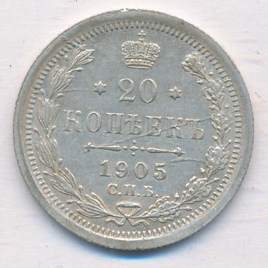 Лицевая сторона — гербовый орел, оборотная —обозначение номинала (20 копеекъ), окруженное венком из лавровой и дубовой ветвей и дата.