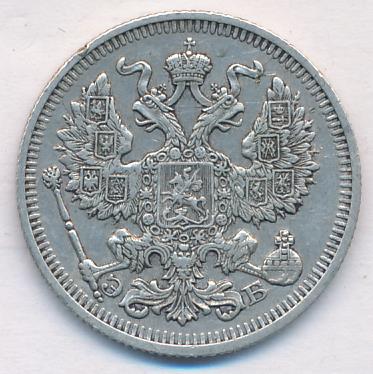Лицевая сторона — гербовый орел, оборотная —обозначение номинала (20 копеекъ), окруженное венком из лавровой и дубовой ветвей и дата.