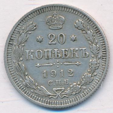 Лицевая сторона — гербовый орел, оборотная —обозначение номинала (20 копеекъ), окруженное венком из лавровой и дубовой ветвей и дата.
