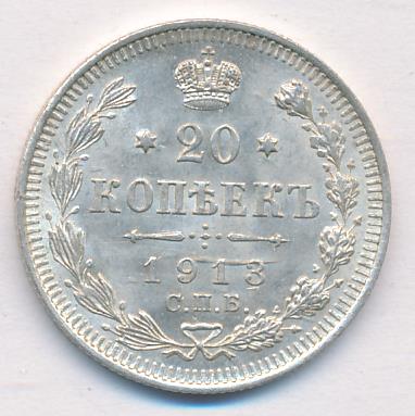 Лицевая сторона — гербовый орел, оборотная —обозначение номинала (20 копеекъ), окруженное венком из лавровой и дубовой ветвей и дата.