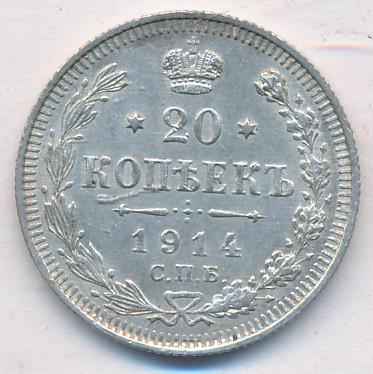 Лицевая сторона — гербовый орел, оборотная —обозначение номинала (20 копеекъ), окруженное венком из лавровой и дубовой ветвей и дата.