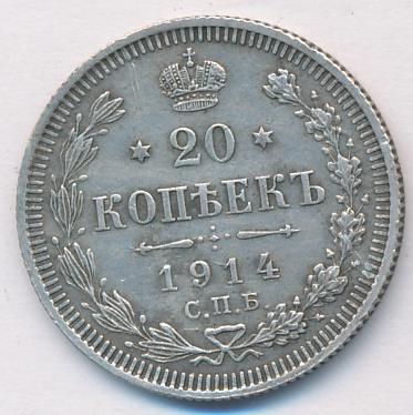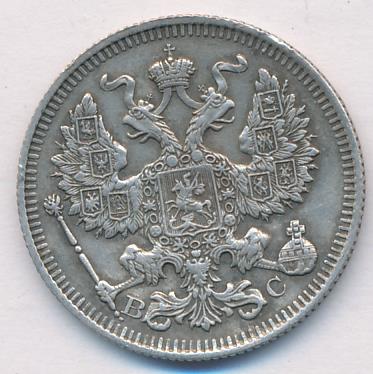 Лицевая сторона — гербовый орел, оборотная —обозначение номинала (20 копеекъ), окруженное венком из лавровой и дубовой ветвей и дата.