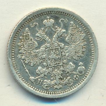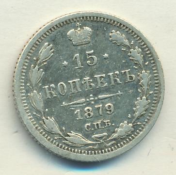 Лицевая сторона — гербовый орел, оборотная —обозначение номинала (15 копеекъ), окруженное венком из лавровой и дубовой ветвей и дата.