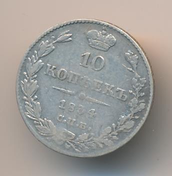 Лицевая сторона — новый гербовый орел с поднятыми крыльями, оборотная —обозначение номинала (10 копеекъ), окруженное венком из лавровой и дубовой ветвей и дата. Проба — 868, нормативный вес — 2,07 грамма.