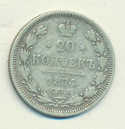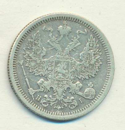 Лицевая сторона — гербовый орел, оборотная —обозначение номинала (20 копеекъ), окруженное венком из лавровой и дубовой ветвей и дата.