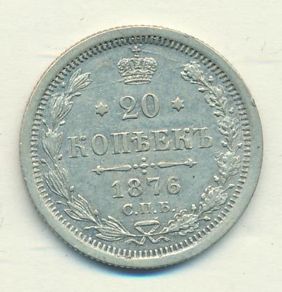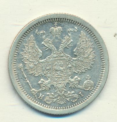 Лицевая сторона — гербовый орел, оборотная —обозначение номинала (20 копеекъ), окруженное венком из лавровой и дубовой ветвей и дата.