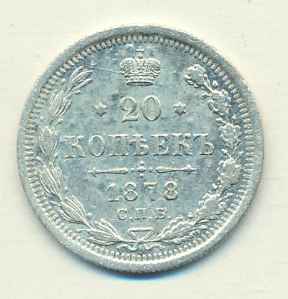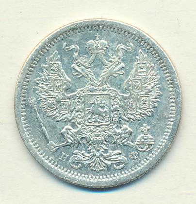 Лицевая сторона — гербовый орел, оборотная —обозначение номинала (20 копеекъ), окруженное венком из лавровой и дубовой ветвей и дата.