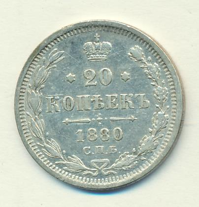 Лицевая сторона — гербовый орел, оборотная —обозначение номинала (20 копеекъ), окруженное венком из лавровой и дубовой ветвей и дата.