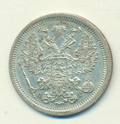 Лицевая сторона — гербовый орел, оборотная —обозначение номинала (20 копеекъ), окруженное венком из лавровой и дубовой ветвей и дата.