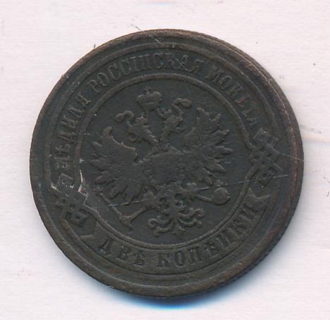 Лицевая сторона — двуглавый орел, надпись МЕДНАЯ РОССIЙСКАЯ МОНЕТА и обозначение номинала (две копейки); оборотная — обозначение номинала (2 копейки) в бусовом ободке и дата. Нормативный вес — 6,55 грамма, гурт рубчатый.