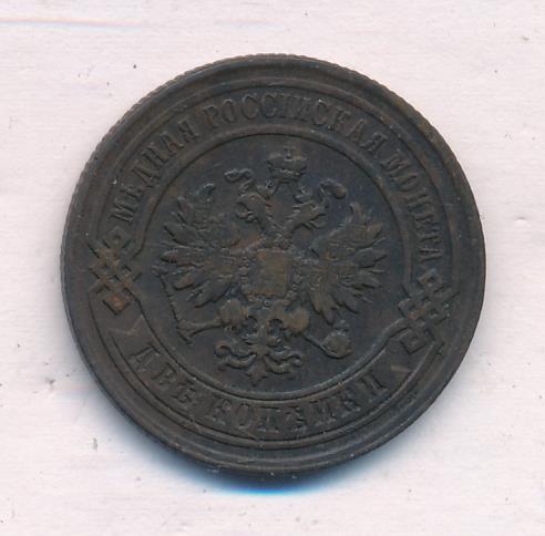 Лицевая сторона — двуглавый орел, надпись МЕДНАЯ РОССIЙСКАЯ МОНЕТА и обозначение номинала (две копейки); оборотная — обозначение номинала (2 копейки) в бусовом ободке и дата. Нормативный вес — 6,55 грамма, гурт рубчатый.