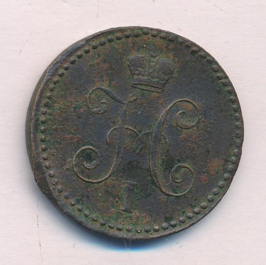 Лицевая сторона — вензель Николая I в бусовом ободке, оборотная — надпись «1 КОПЕЙКА СЕРЕБРОМ» и дата. Нормативный вес — 10,24 грамма, гурт гладкий.