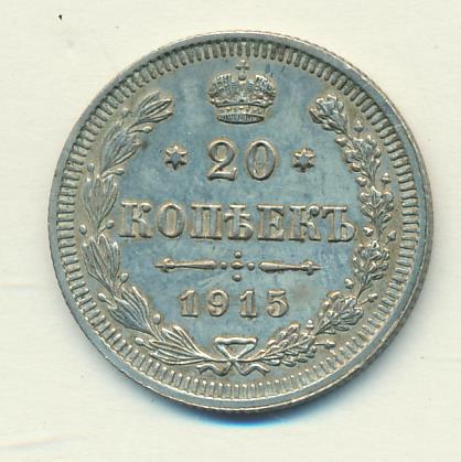 Лицевая сторона — гербовый орел, оборотная —обозначение номинала (20 копеекъ), окруженное венком из лавровой и дубовой ветвей и дата.