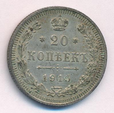 Лицевая сторона — гербовый орел, оборотная —обозначение номинала (20 копеекъ), окруженное венком из лавровой и дубовой ветвей и дата.