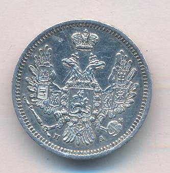 Лицевая сторона — новый гербовый орел с поднятыми крыльями, оборотная —обозначение номинала (10 копеекъ), окруженное венком из лавровой и дубовой ветвей и дата. Проба — 868, нормативный вес — 2,07 грамма.