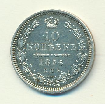 Лицевая сторона — новый гербовый орел с поднятыми крыльями, оборотная —обозначение номинала (10 копеекъ), окруженное венком из лавровой и дубовой ветвей и дата. Проба — 868, нормативный вес — 2,07 грамма.
