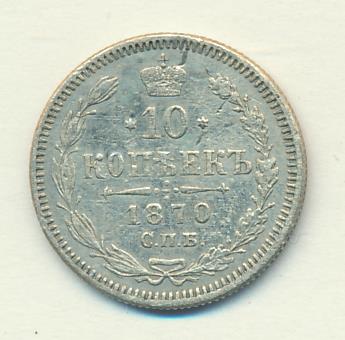 Лицевая сторона — гербовый орел, оборотная —обозначение номинала (10 копеекъ), окруженное венком из лавровой и дубовой ветвей и дата.