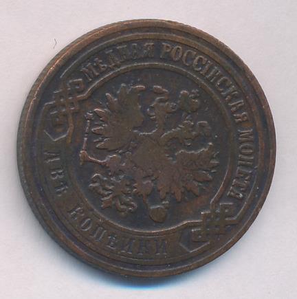 Лицевая сторона — двуглавый орел, надпись МЕДНАЯ РОССIЙСКАЯ МОНЕТА и обозначение номинала (две копейки); оборотная — обозначение номинала (2 копейки) в бусовом ободке и дата. Нормативный вес — 6,55 грамма, гурт рубчатый.