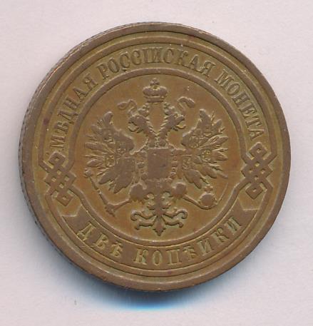 Лицевая сторона — двуглавый орел, надпись МЕДНАЯ РОССIЙСКАЯ МОНЕТА и обозначение номинала (две копейки); оборотная — обозначение номинала (2 копейки) в бусовом ободке и дата. Нормативный вес — 6,55 грамма, гурт рубчатый.
