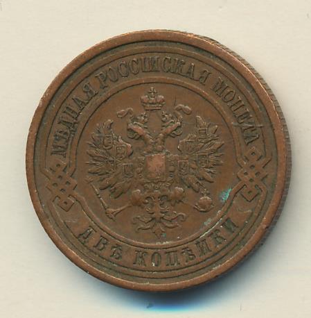 Лицевая сторона — двуглавый орел, надпись МЕДНАЯ РОССIЙСКАЯ МОНЕТА и обозначение номинала (две копейки); оборотная — обозначение номинала (2 копейки) в бусовом ободке и дата. Нормативный вес — 6,55 грамма, гурт рубчатый.