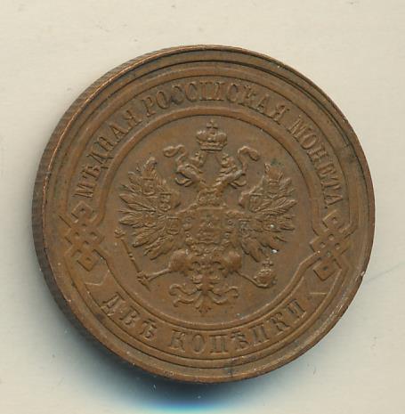 Лицевая сторона — двуглавый орел, надпись МЕДНАЯ РОССIЙСКАЯ МОНЕТА и обозначение номинала (две копейки); оборотная — обозначение номинала (2 копейки) в бусовом ободке и дата. Нормативный вес — 6,55 грамма, гурт рубчатый.