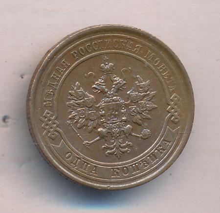 Лицевая сторона — двуглавый орел, надпись МЕДНАЯ РОССIЙСКАЯ МОНЕТА и обозначение номинала (одна копейка); оборотная — обозначение номинала (1 копейка) в бусовом ободке и дата. Нормативный вес — 3,28 грамма, гурт рубчатый.